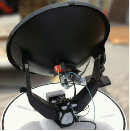 The parabolic dish is also carbon-fiber with a patent-pending metallic coating process, com-bining the advantages of both materials: lightweight and immune to thermal and mechanical deformations but with a smooth and conductive surface.
